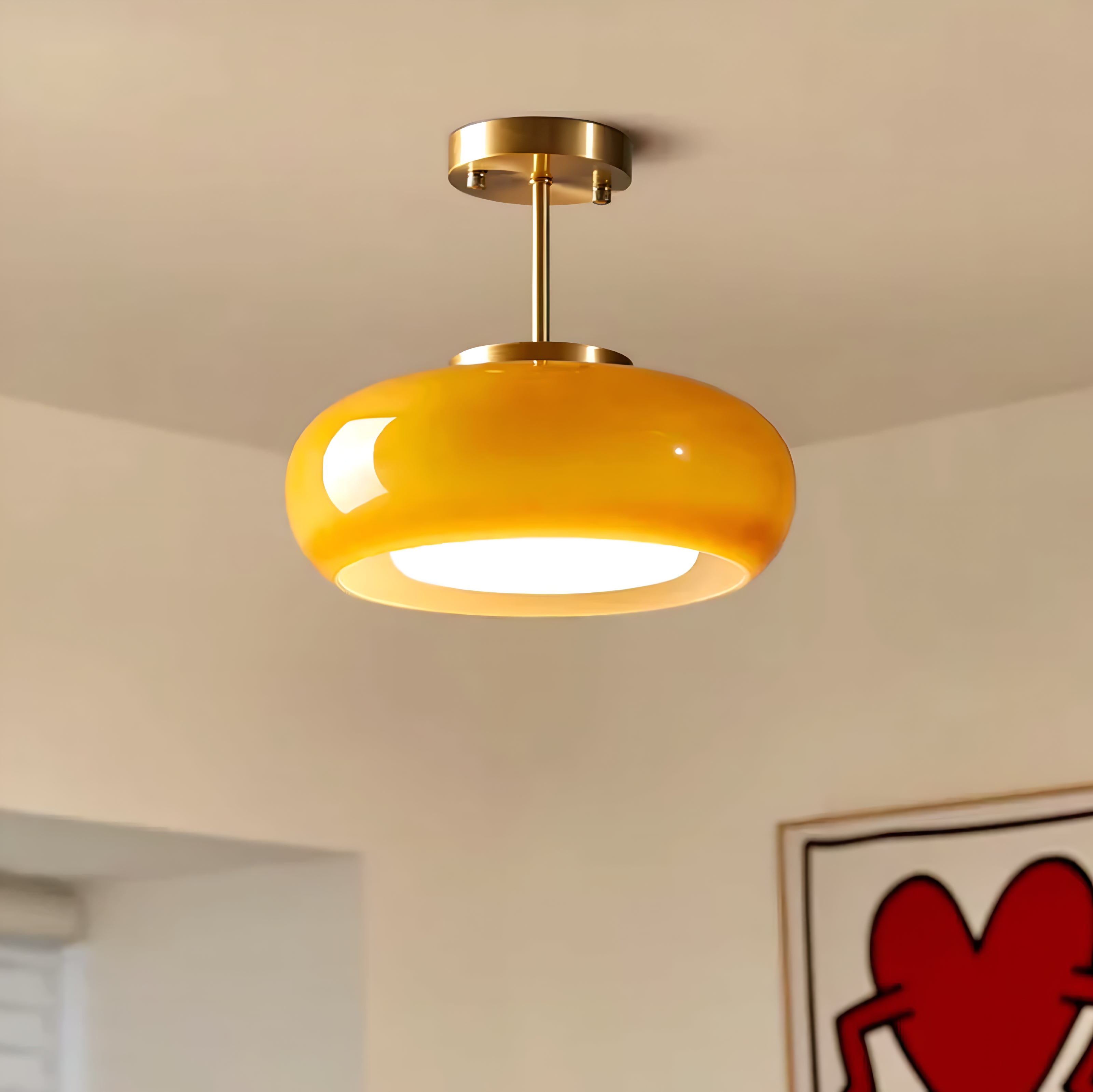 La Lanterne Royale - Art Deco White and Orange Glass Ceiling Light