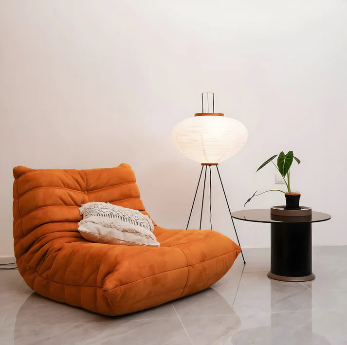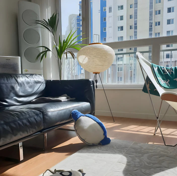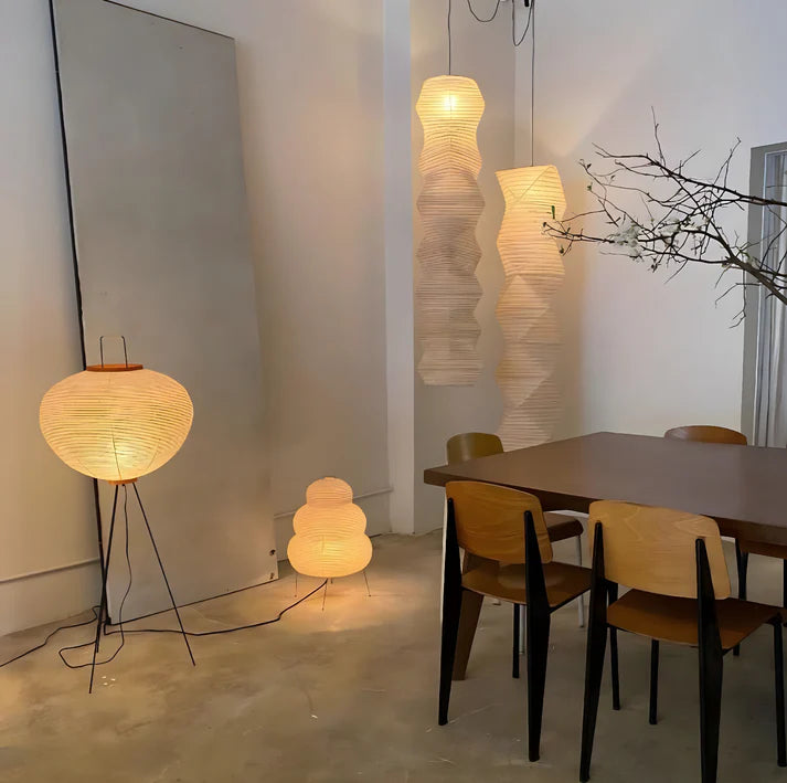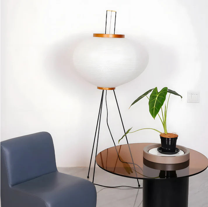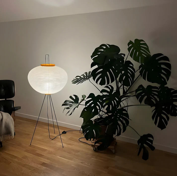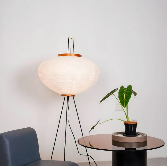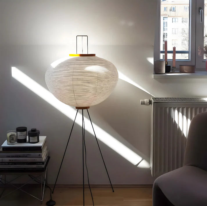 Solis Floor Lamp creates a warm, calm atmosphere through softly diffused light and a timeless silhouette. Its paper shade filters light gently, while the tripod base adds a subtle sculptural touch.